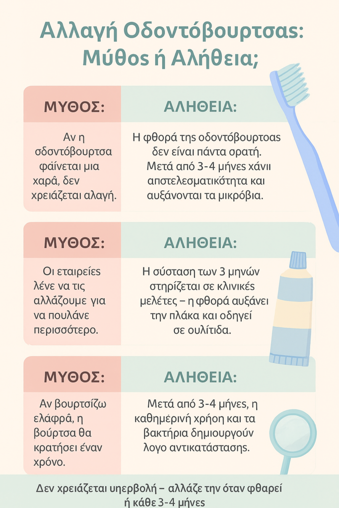 Myth vs Fact: Πρέπει πραγματικά να αλλάζουμε τόσο συχνά οδοντόβουρτσα;